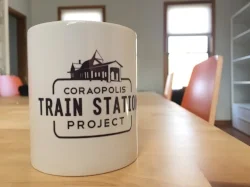Your donation gets us one step closer to our goal. With a donation of $12 you will receive Coraopolis Train Station coffee mug as a gift for your contribution.
